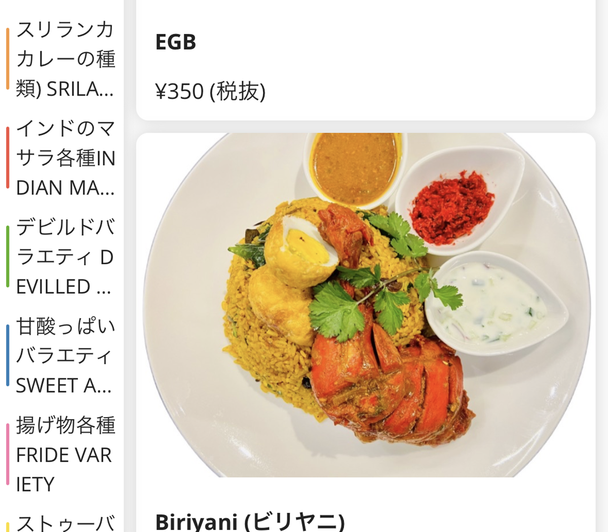 すみません、ビリヤニは…。