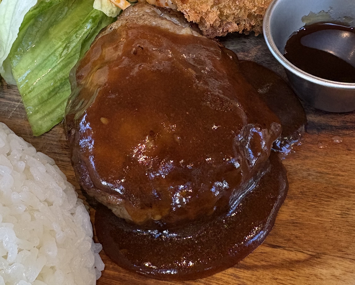 ハンバーグのソースは味が濃いめ。ご飯が進む(デンジャラス)。