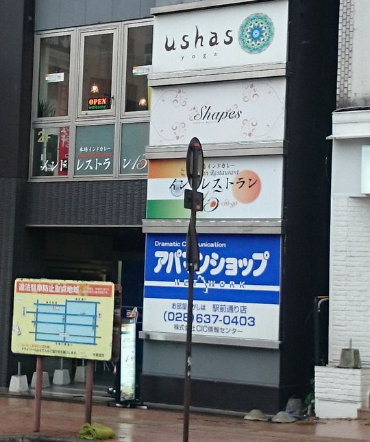 駅でバスを降りて、お店を見上げたら