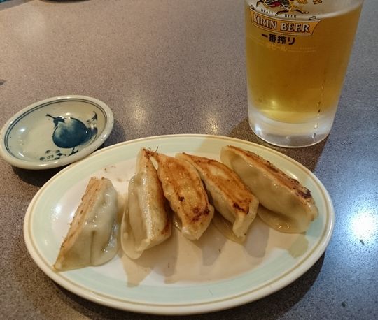 餃子の焼きあがりまで、生ビールで待つ喜び。