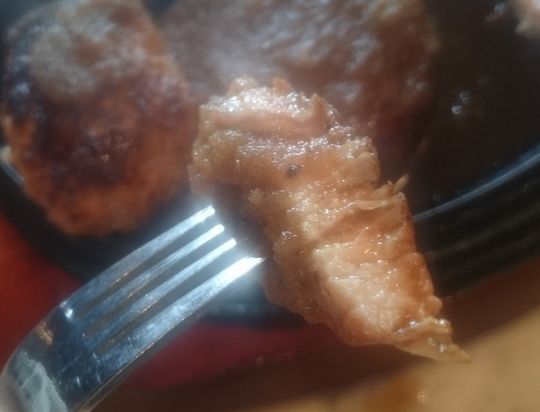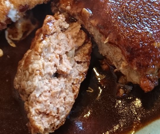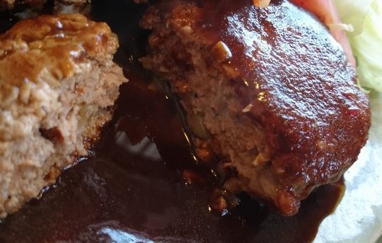 溢るる肉汁、デミソースと渾然一体となり