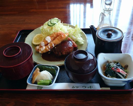 えーと、ランチメニューのハンバーグ&海老フライセット1200円にしようかなと