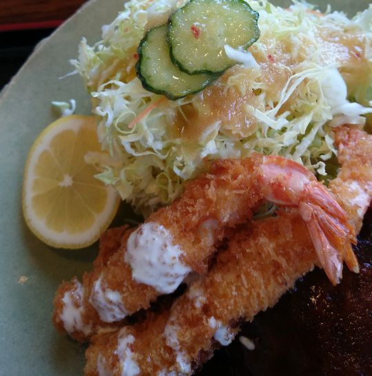 海老が二本、ハンバーグがどどーん、というのもう嬉しいですが