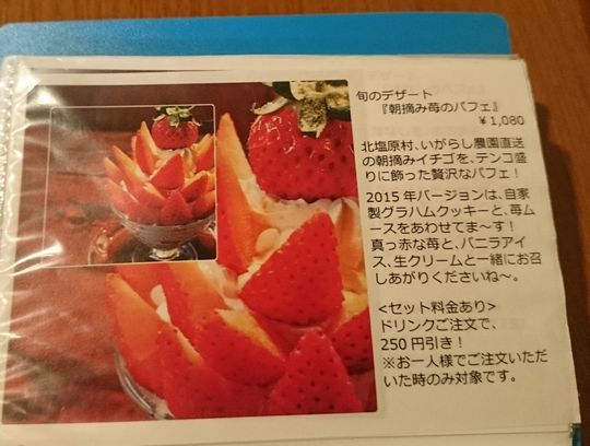 朝摘み苺のパフェ1080円があるのでした。