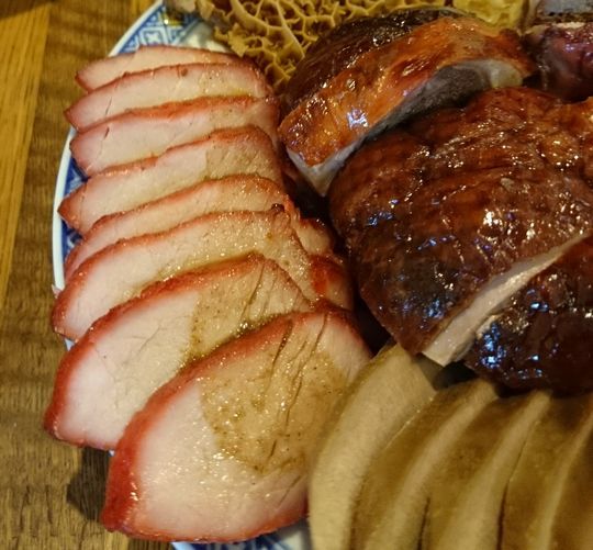 チャーシュー、皮つき焼き豚、焼きあひる、蒸し若鳥、