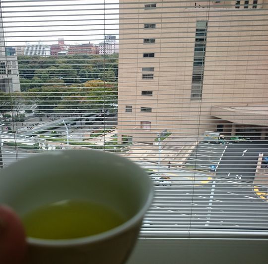 新宿の高層ビルから初秋の木々を見下ろしながら、茶師十段のお茶でボー。