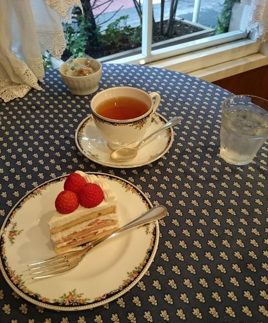 ケーキ585円+アールグレイ450円+税で1118円でございました。