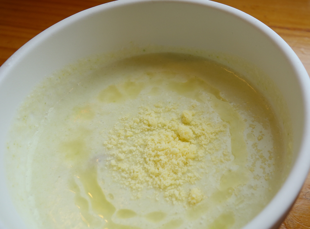 平打ち麺がアスパラクリームをまとい、冷製クリームパスタのよう。