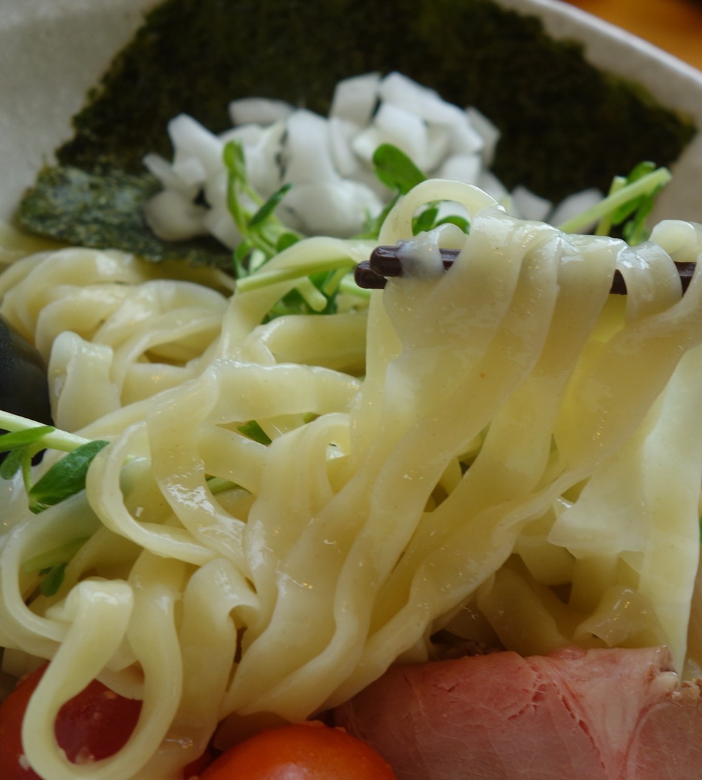 カロリー的に半盛りをお願いするべきでありましたが、それをしなかったのは、私は平打ち麺が好きだから。単純明快。
