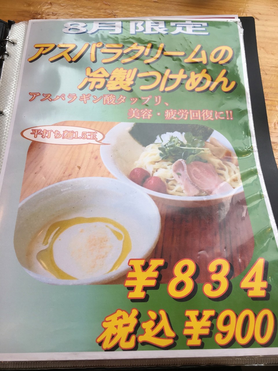 二代目 村岡屋さんの8月限定「アスパラクリームの冷製つけめん」をなんとしても食べねばと心に決めておりました。