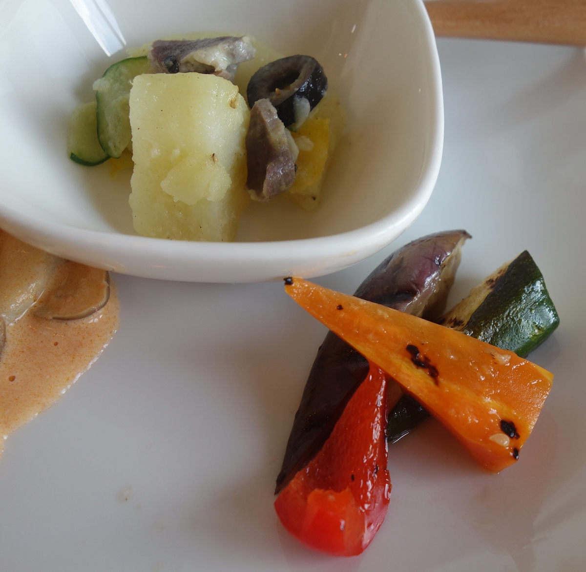デリは、砂肝とポテトのサラダと、焼野菜のマリネ。