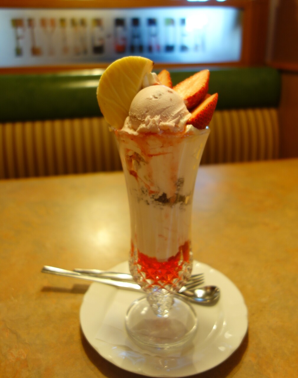 カフェタイムメニューの「季節のパフェ」は、果たして現在は「いちごパフェ」なのかということ。