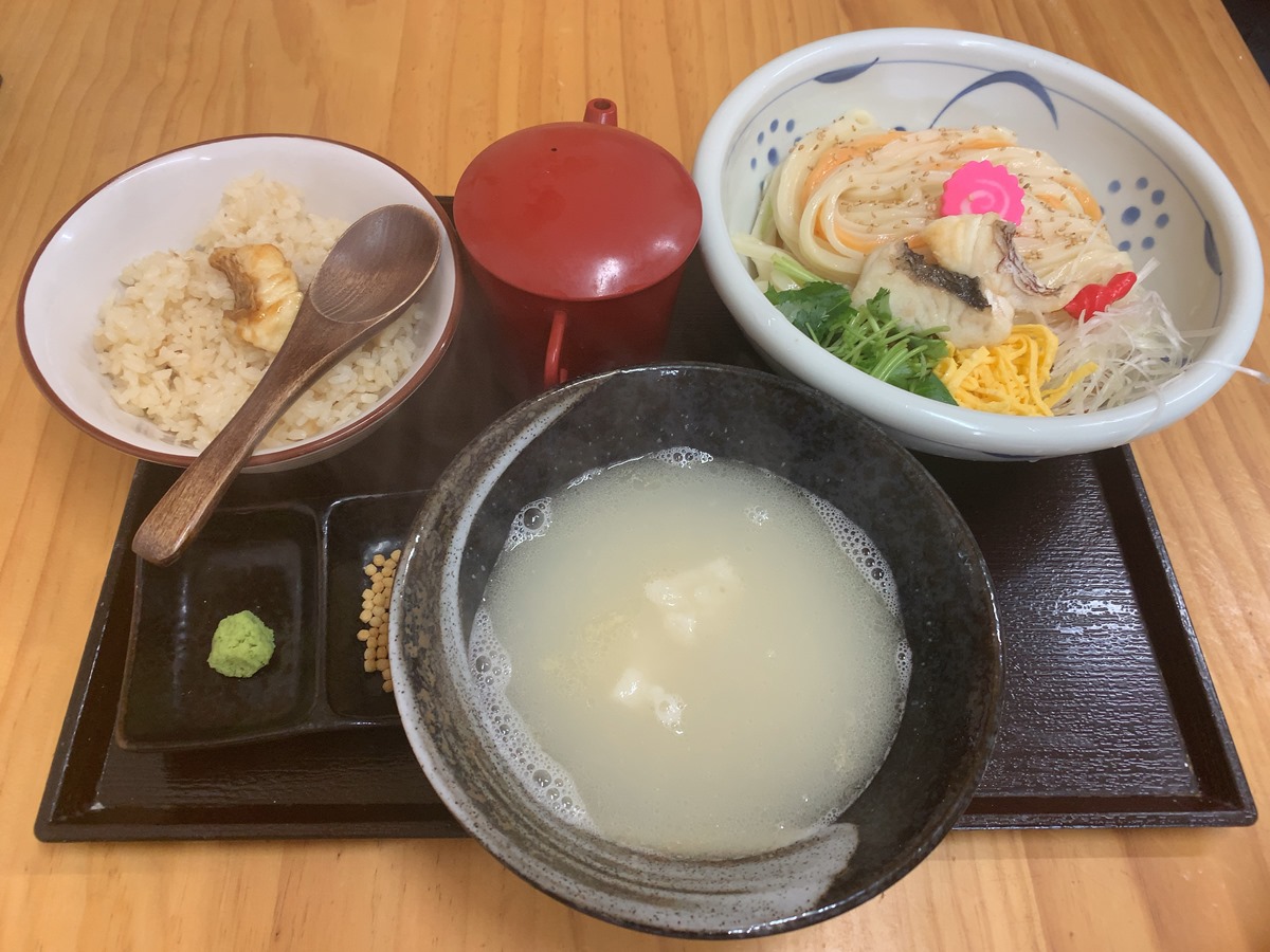 鯛出汁と炒り子出汁にうどんをつけて食べるのは初めてだ。