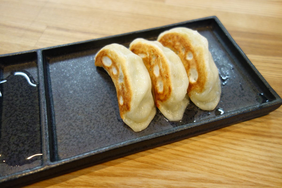 餃子三個と、つけめん…。醤油と塩、どっちがいいんだろう。