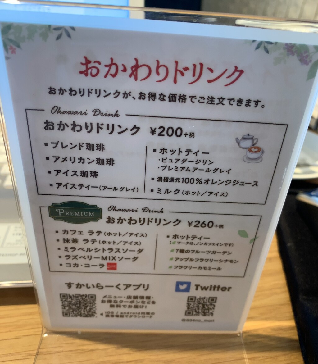 おかわりは、別なドリンクオーダーもOKなのがいいですね!