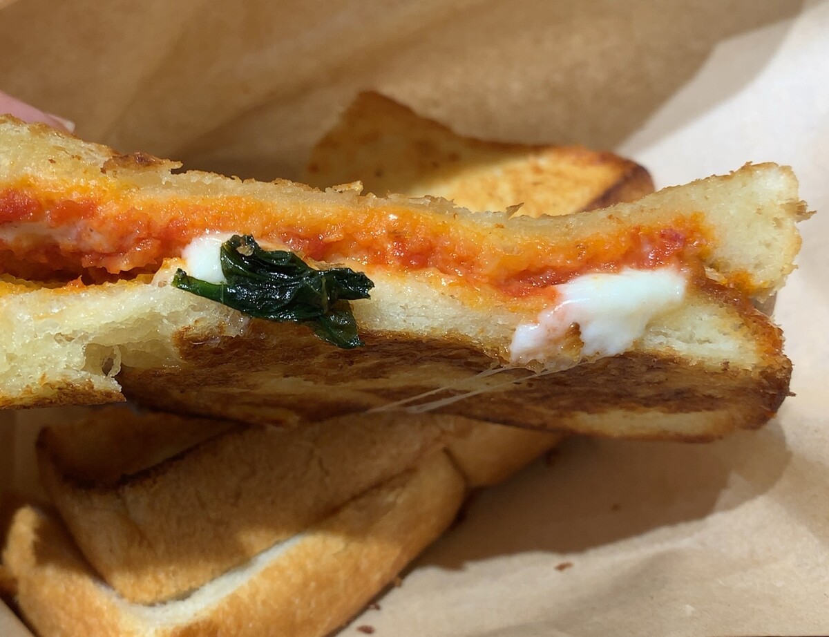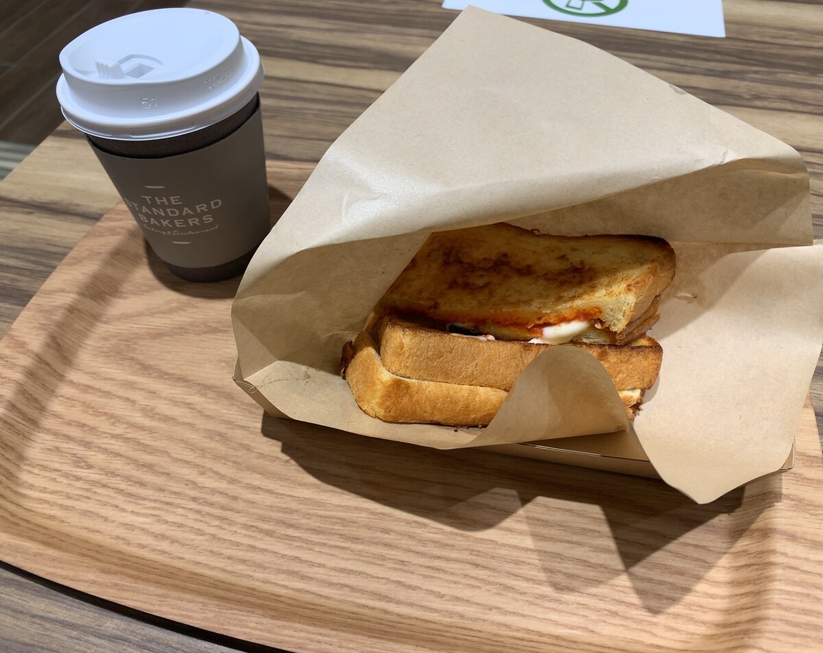 そうですね、グリルドトマト&モッツァレラとホットコーヒーをお願いします。