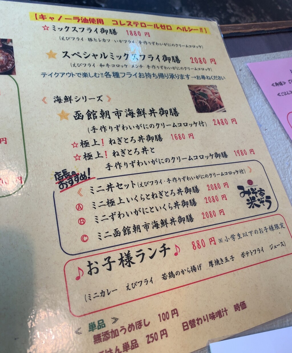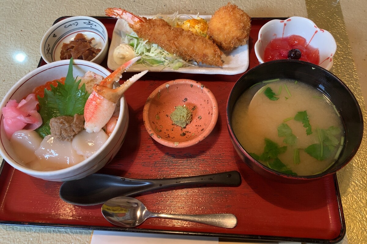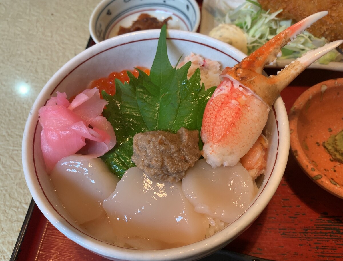 ミニ函館朝市海鮮丼御膳2080円。