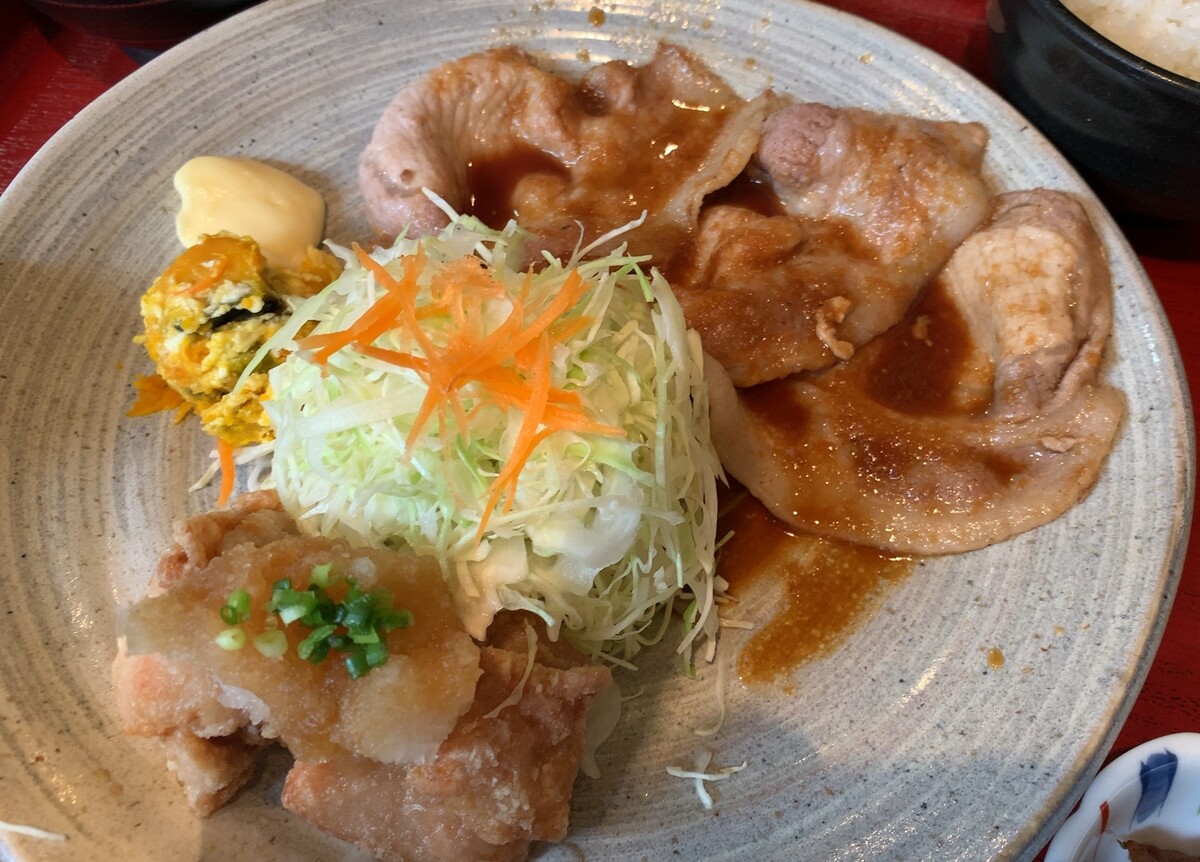 夫は「とちぎ豚の生姜焼き(三枚)と若鳥の唐揚げ御膳」1780円。