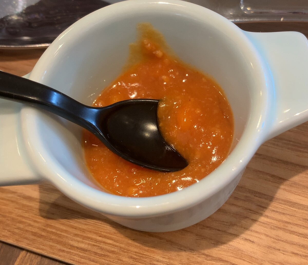 最高点が容器のフチと並行になってから車に乗り込んだんですが、私の胃の容量としては、ここでギブアップ。