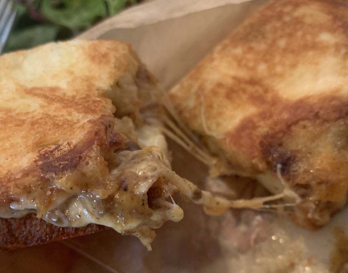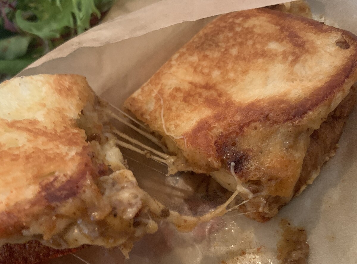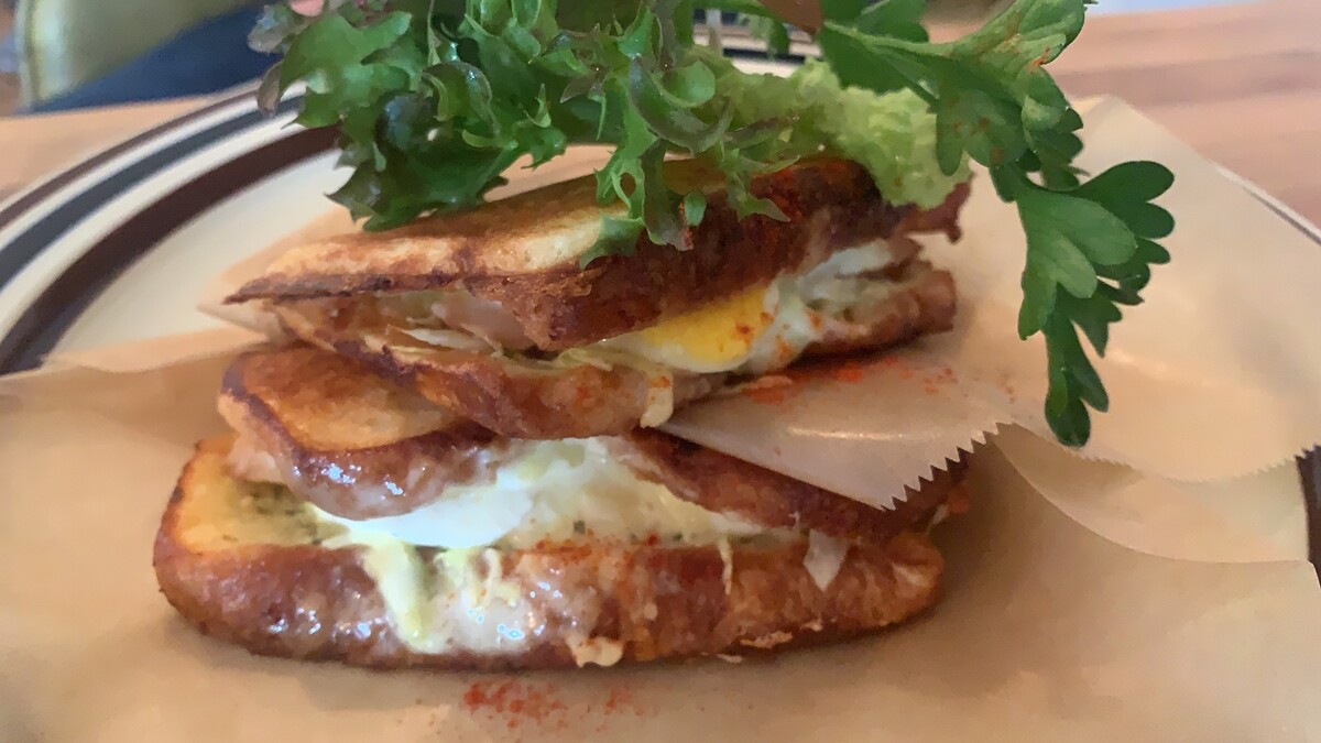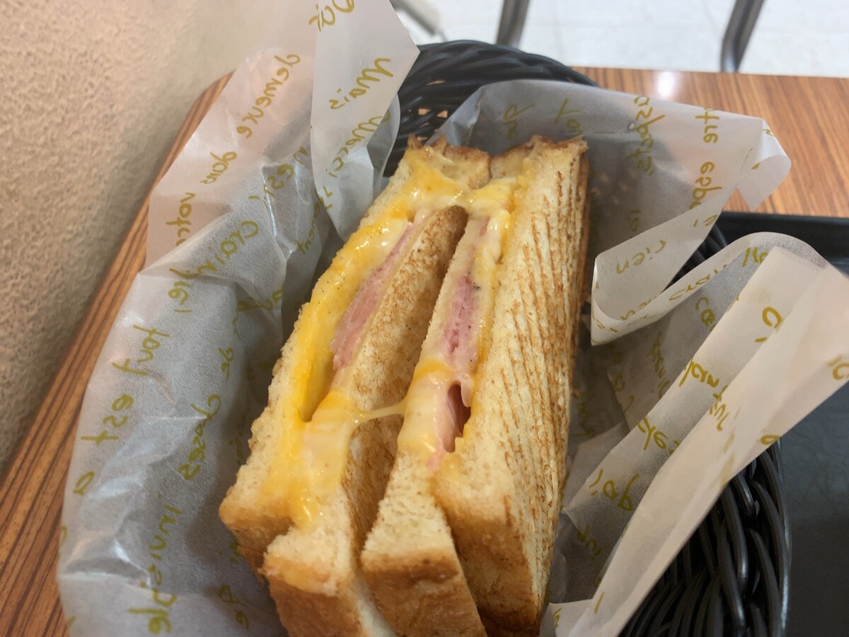 お供は、ハム&チーズサンド。