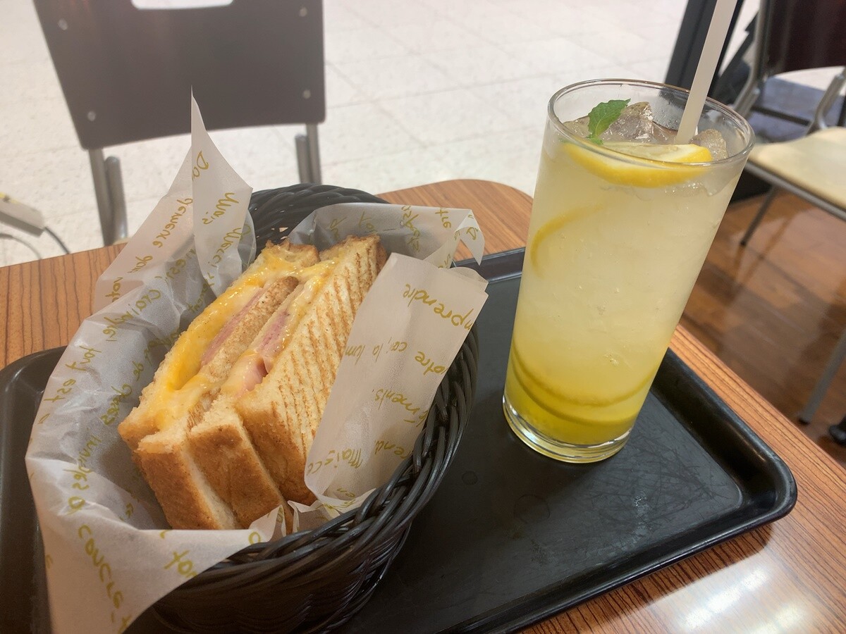 ベックスサンドシリーズの中ではいちばん好きな海老&アボカドを食べながら、もしかして、400円のモーニングセット(ハム&玉子サンドとドリンク)を注文して瀬戸内レモネード別注した方が安かったなと気づいたのでした。