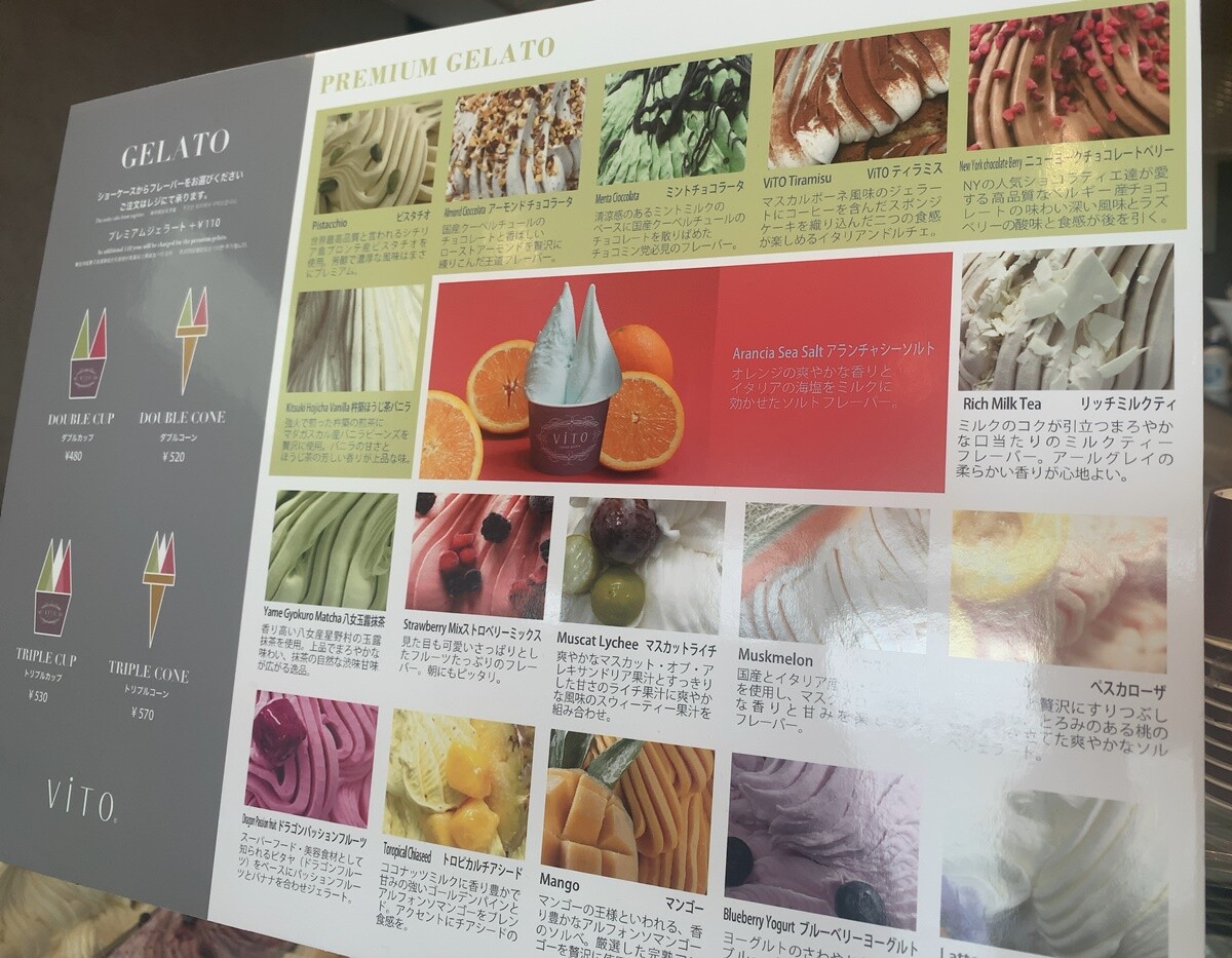 クレープやコーヒーもありますが、初回なのでジェラートで行きましょう。
