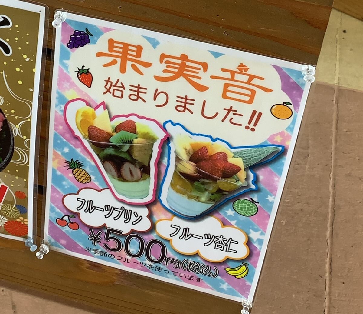 夫は前回食べて気に入った「フルーツ杏仁」…の仲間の「フルーツプリン」500円。