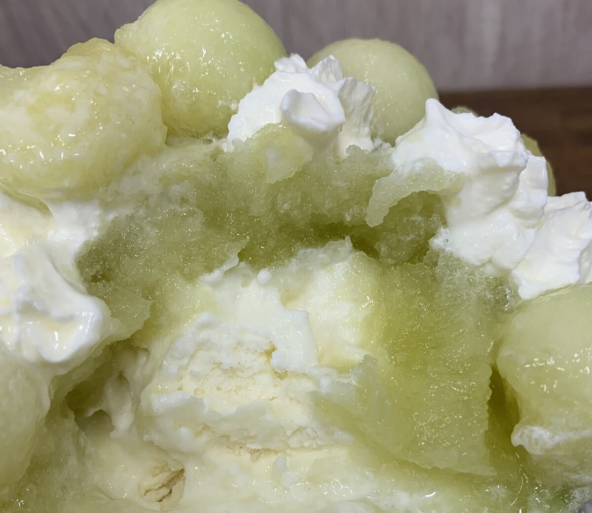 普通のかき氷ではなく、メロン果汁のかき氷。