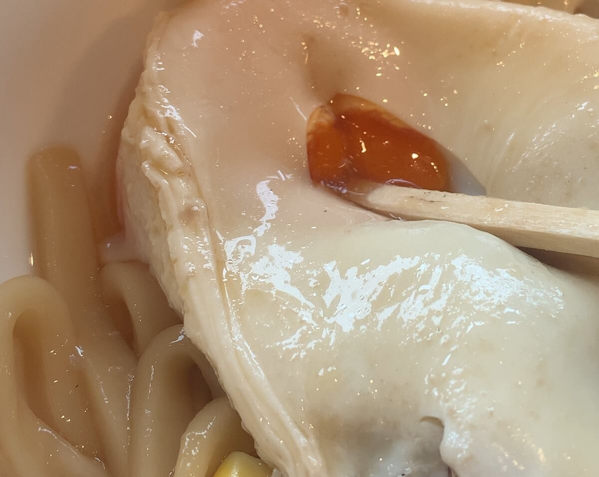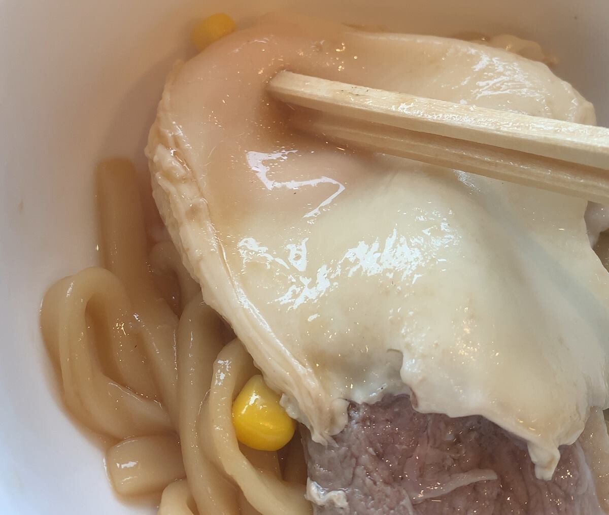 私は生卵の黄身が汁に溶け込むのが耐えがたいので(ゆえに月見うどんは食べられない)、最後までとっておきます。