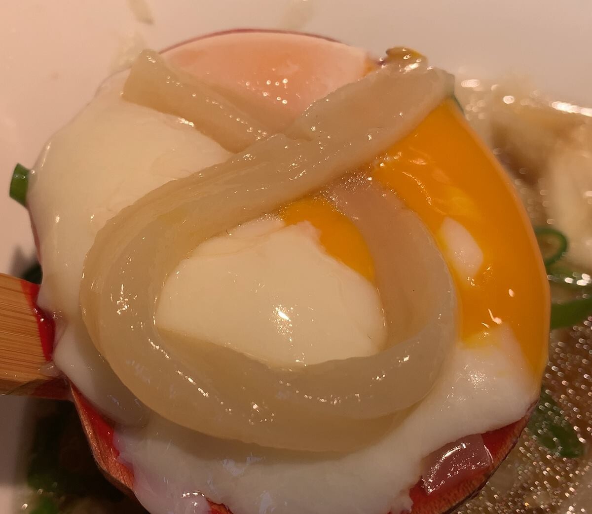 太麺なのかなと思ってたら細麺で、ミートソースの風味が独特。なんというか、スパイシーというか。