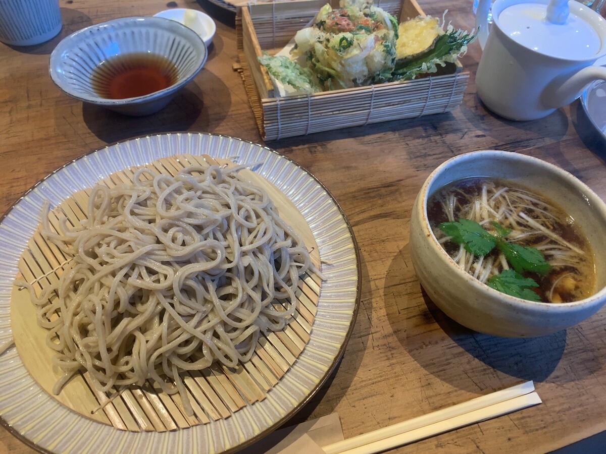 夫は季節の天ぷら蕎麦セット。