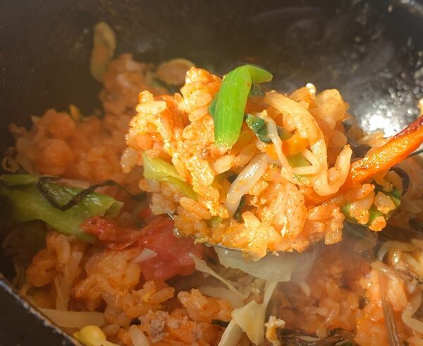 キムチは石焼きビビンバへ in。