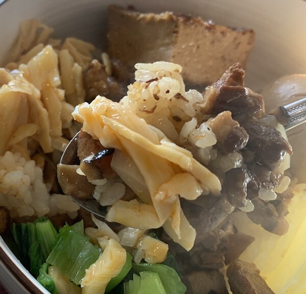 「本場のルーローハンはね、三つのトッピングが必須なの!穂先メンマと厚揚げと…」