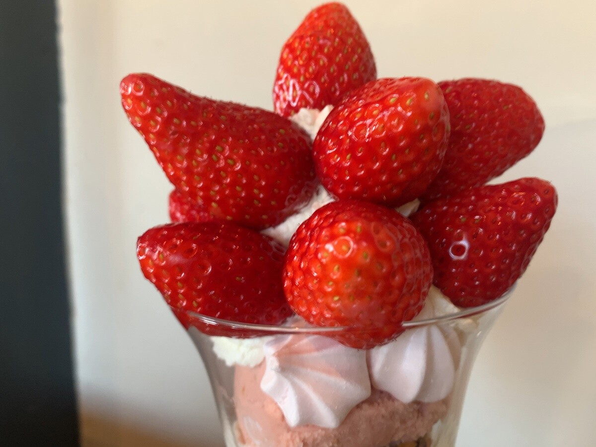 私は、今日の朝ごはんはチーズトースト、午前中にいちごパフェを一個食べてしまった。