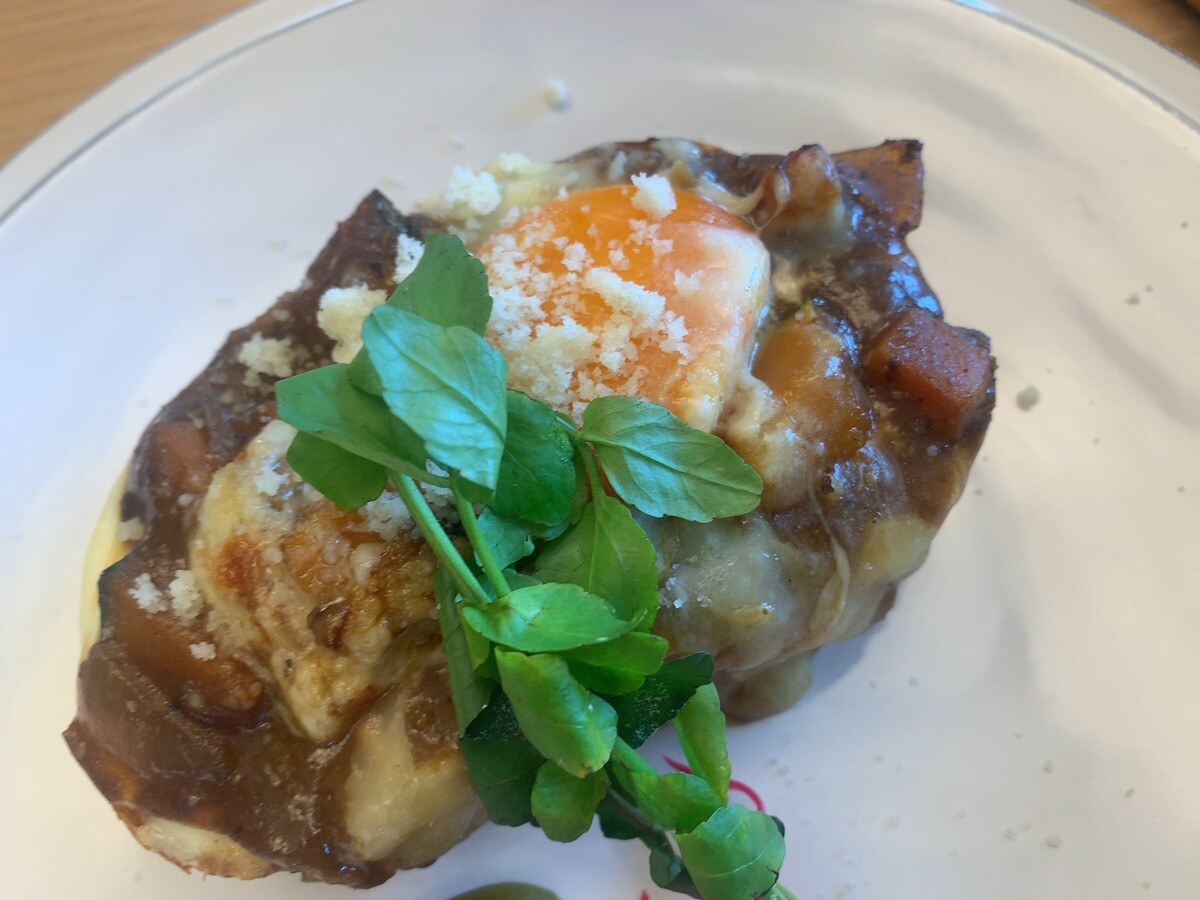 朝ごはんが鯖缶だったから、キーマカレークロックマダムにするか。