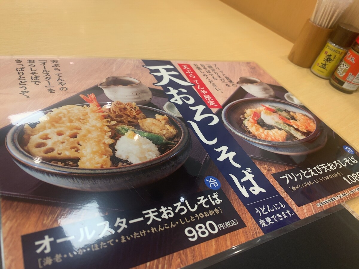 「おろしそば」だと、オールスターか海老天。