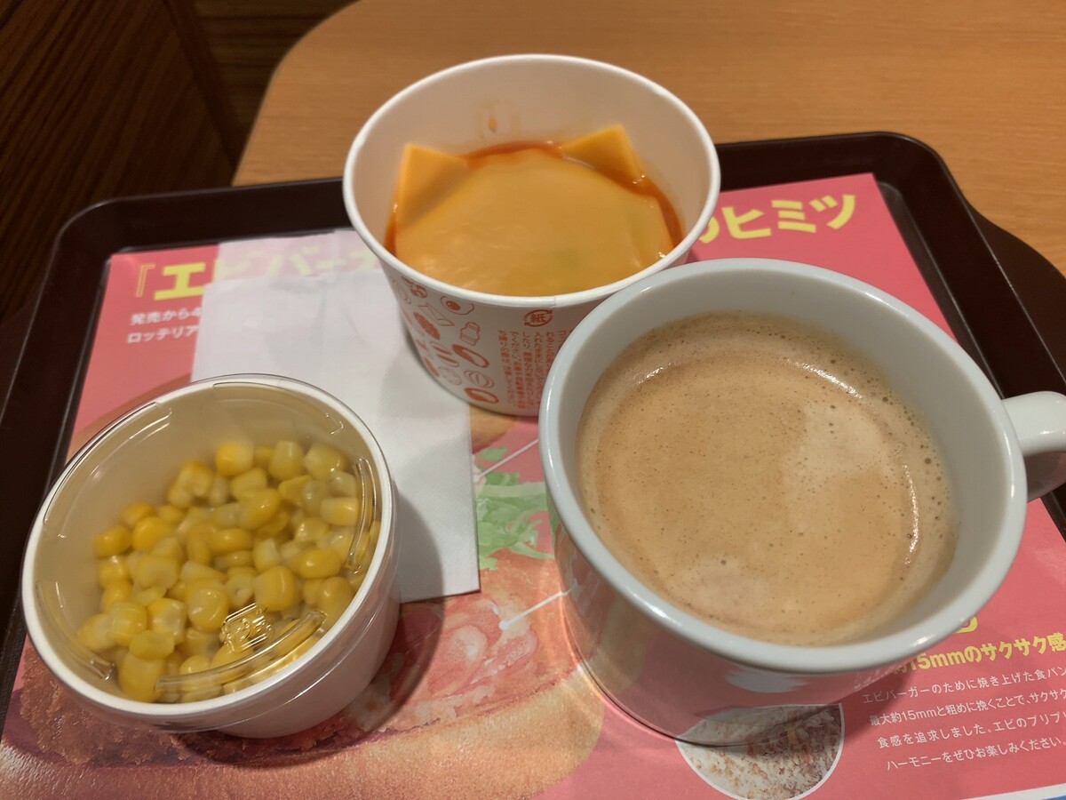 ですのでコーンサラダで。ドリンクはコーヒーです。