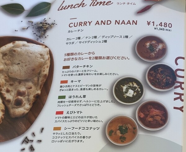 カレー&ナンセットは、5種類の中から2種類選ぶスタイル。