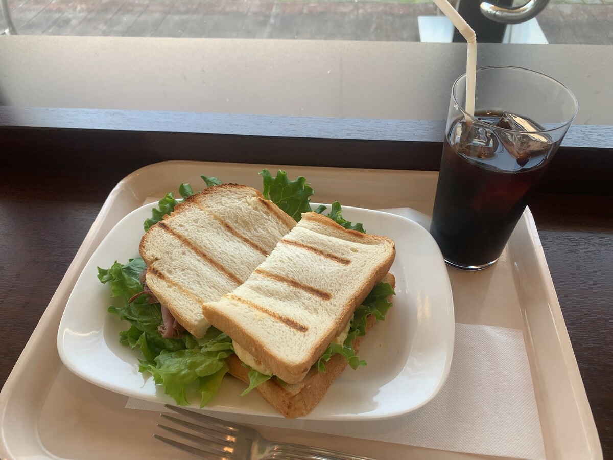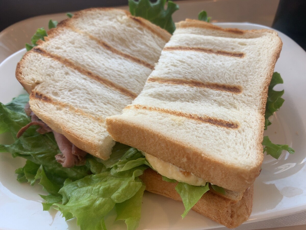 ローストビーフとたまごサラダのWサンドっていいな。