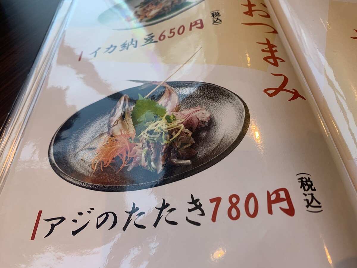 アジのたたきをオーダーしてシェア。