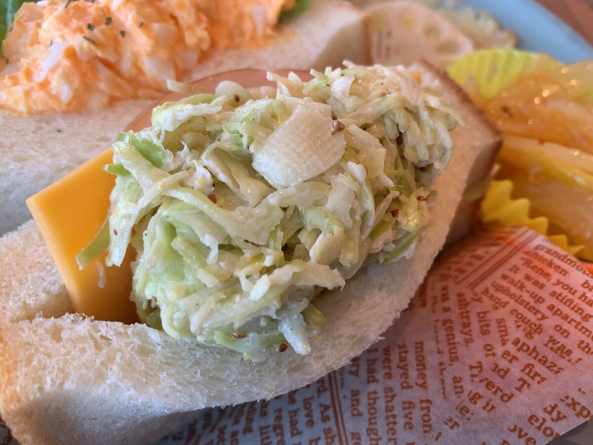 健康のため(キャベツ)、組み合わせるサンドは「キャベツサラダとハムチーズ」にしました。
