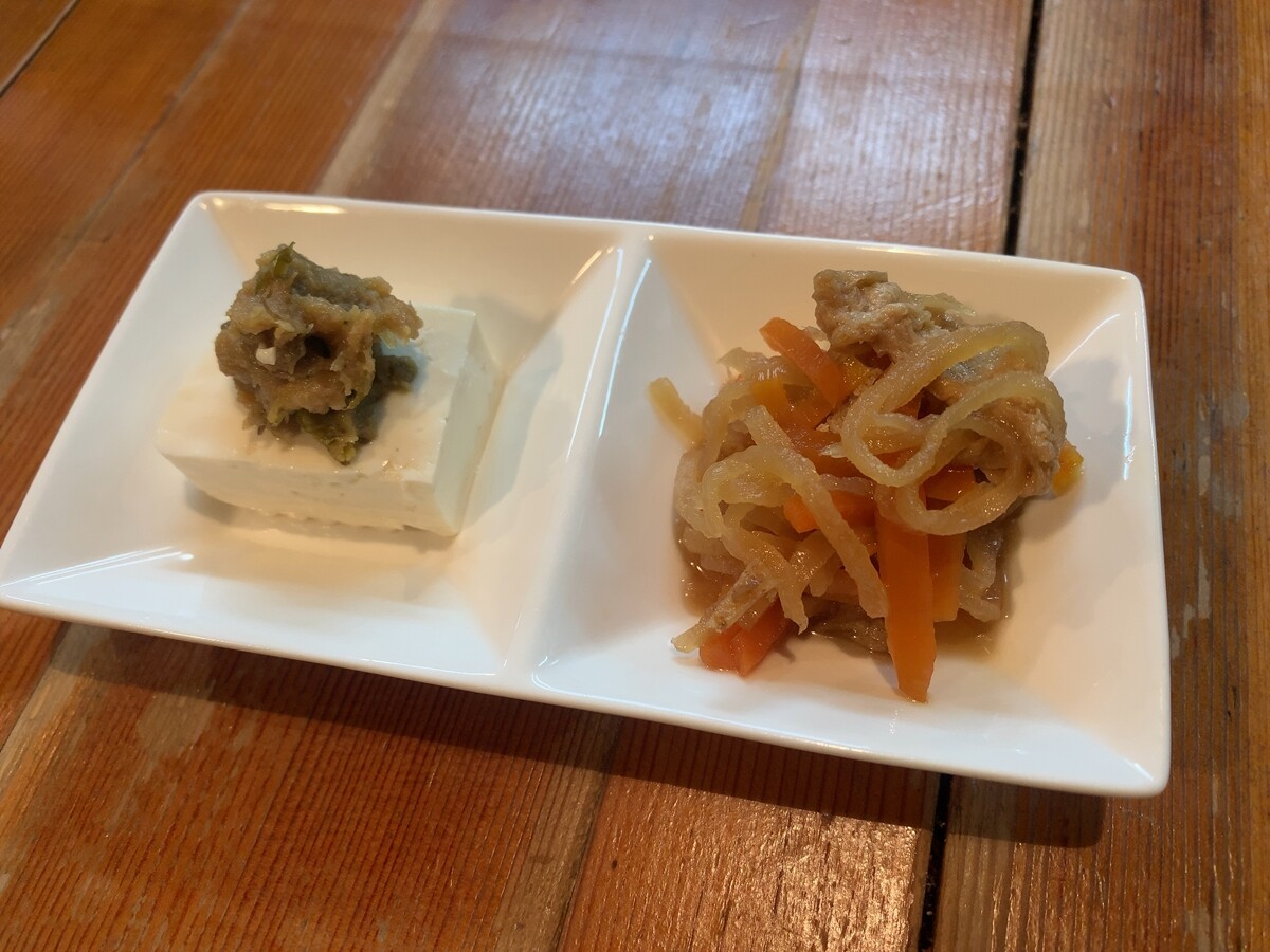 お通しは、切干大根とフキ味噌が乗ったお豆腐。