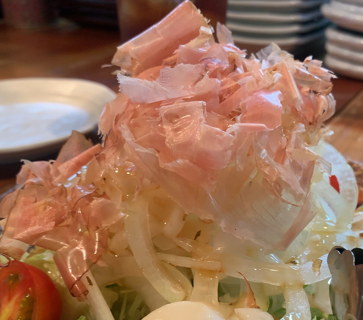 こちらのサラダに乗っているかつお節、非常に存在感がありますのです…!