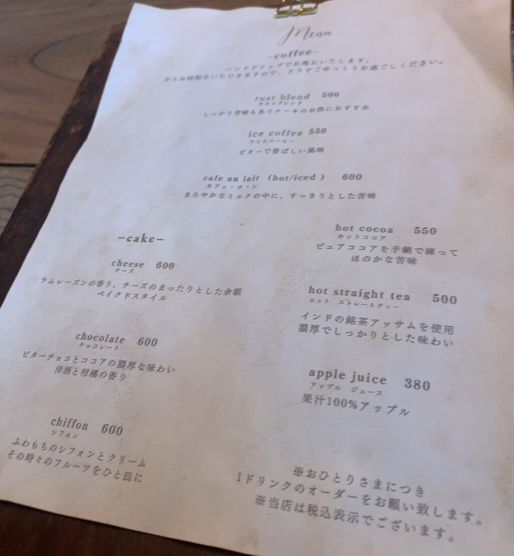 ドリンクとセットで1500円、ケーキがつくと2000円だそうです。