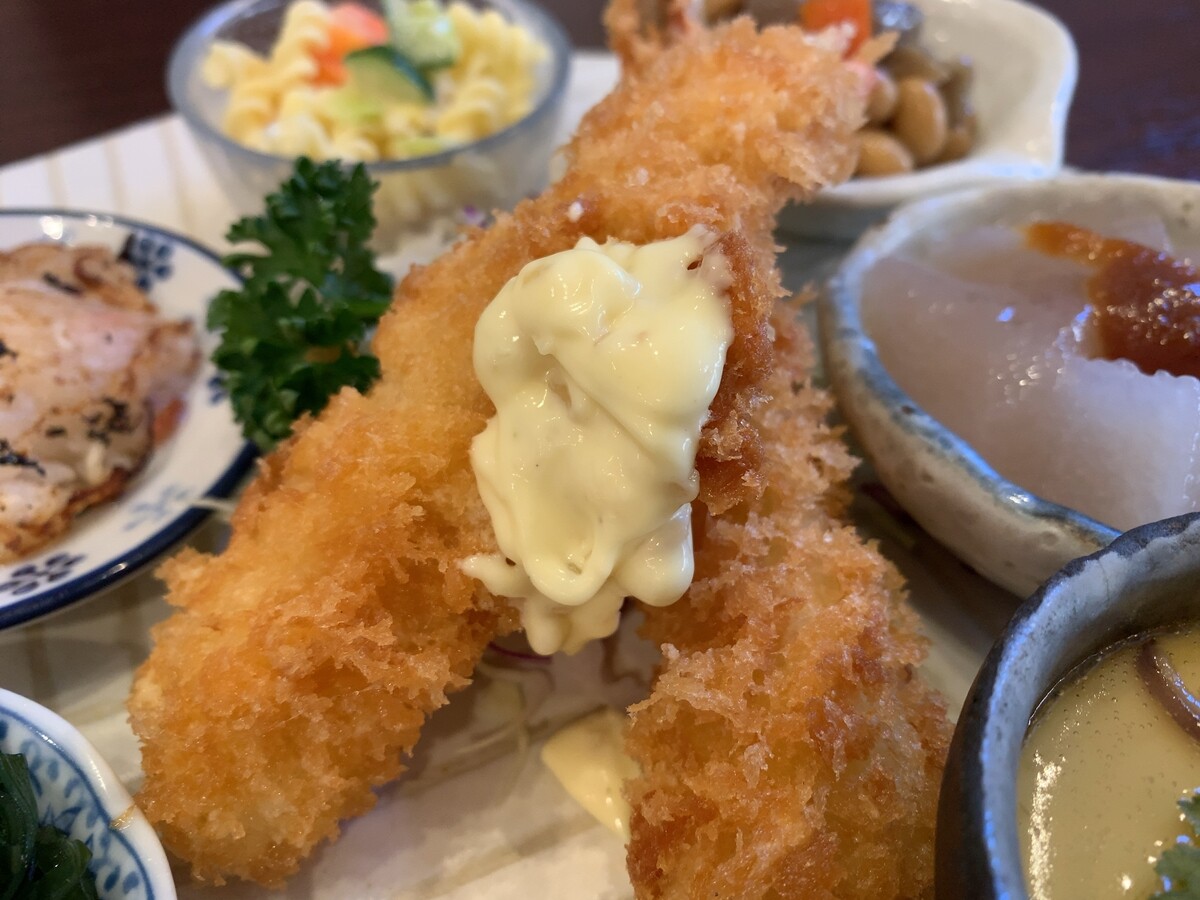 最近、豚を食べる頻度が上がっているので、あえてエビフライに。