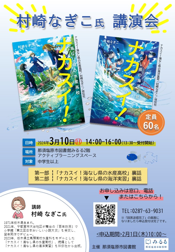 3月10日(日)、那須塩原市図書館「みるる」様にて講演会の講師を務めさせていただくことになりました。
