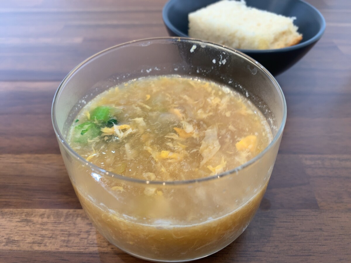 春キャベツ、菜の花、卵のブイヨンスープ。