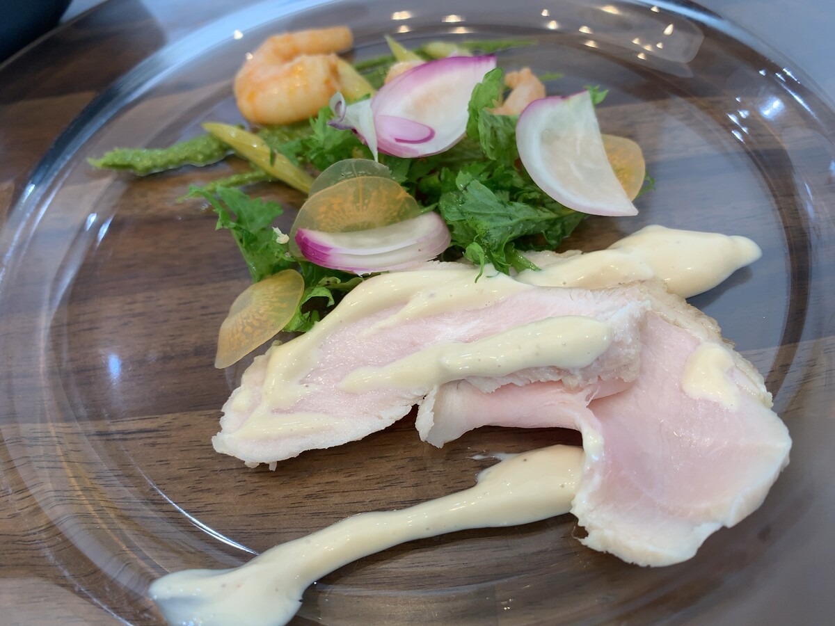 海老とセロリのアンチョビマリネ、鶏胸サラダ。
