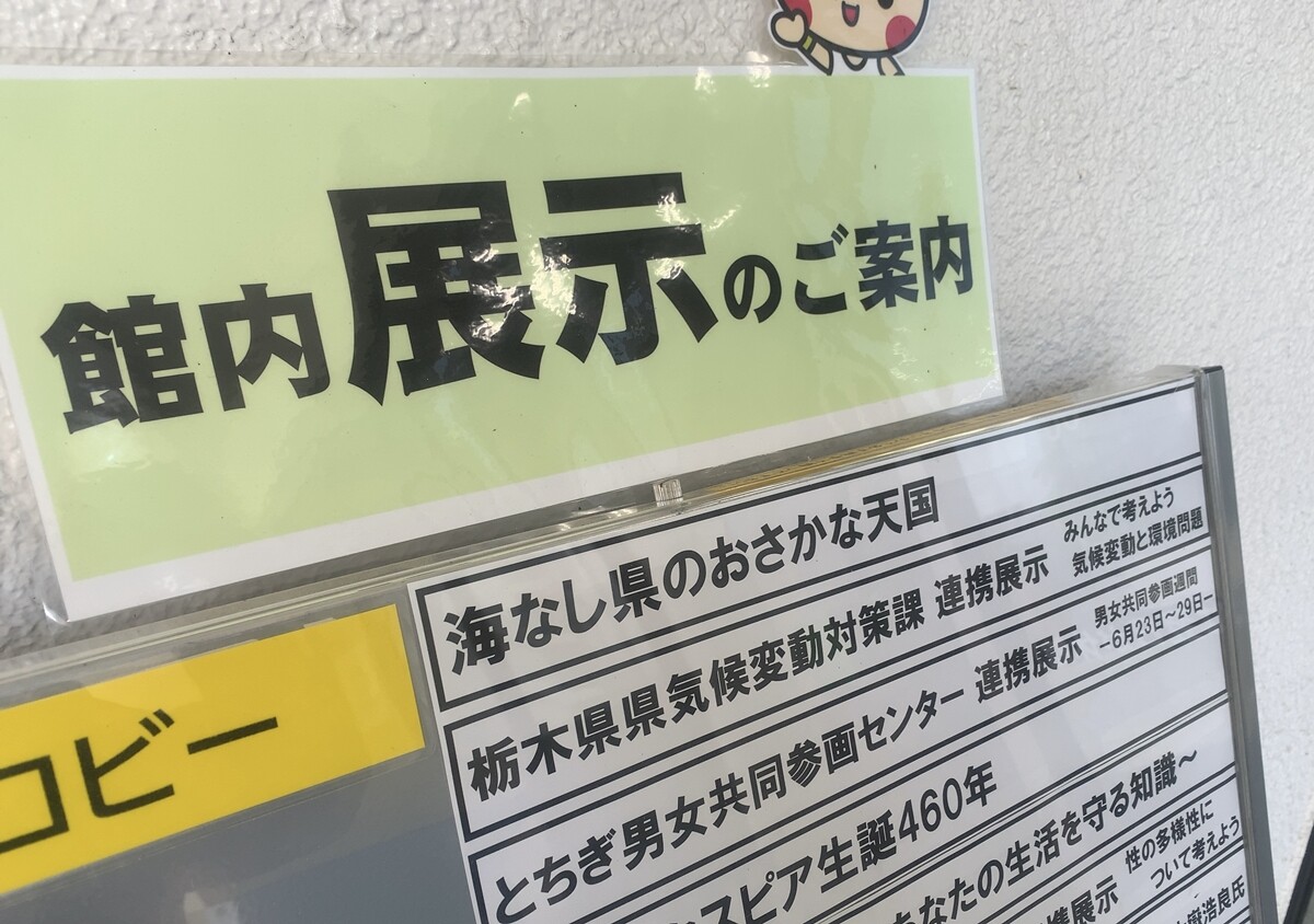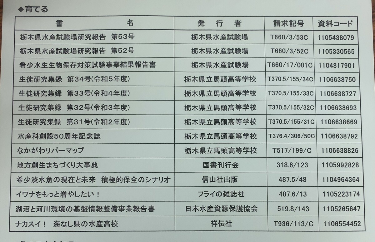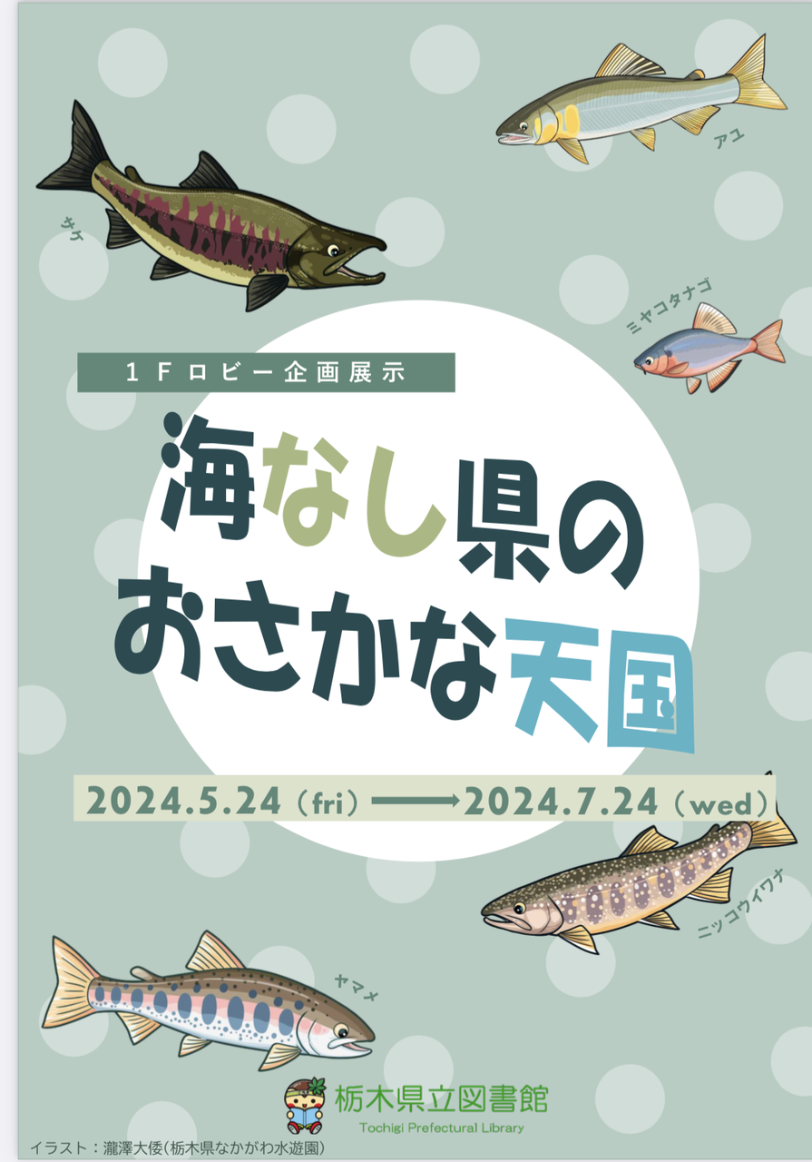「ふれる」「食べる」「育てる」の3つをテーマに、栃木のおさかな関連書籍等が展示されています。拙著「ナカスイ!」もありました(ありがとうございます)。