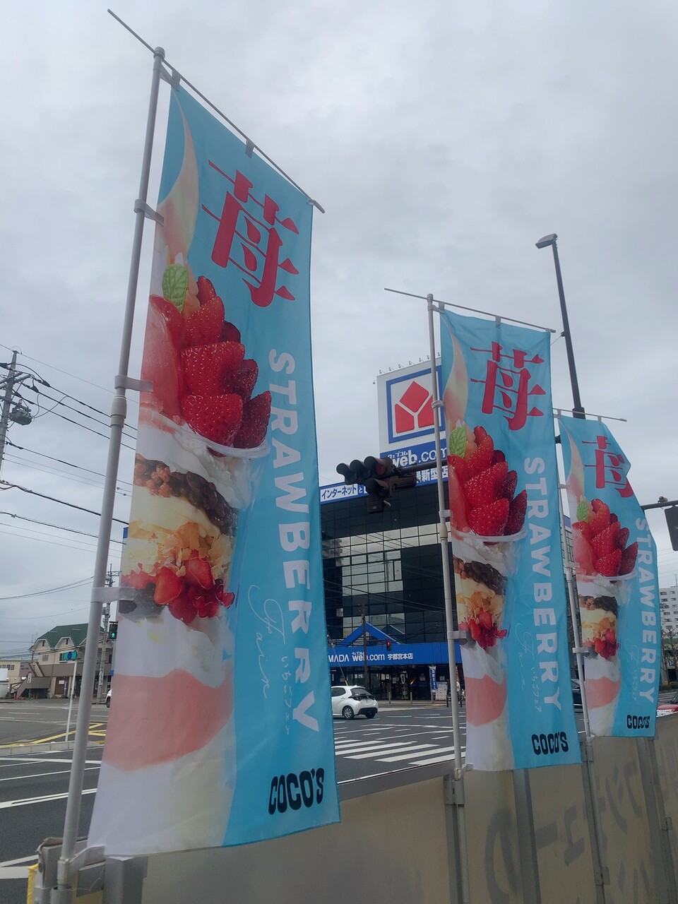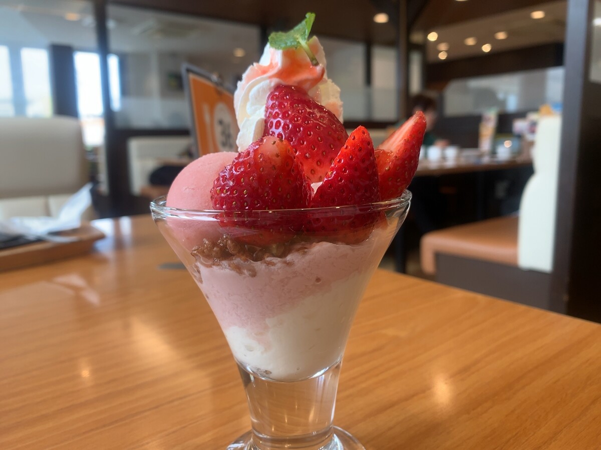 ファミレスのココス、いちごの時期はパフェがあり